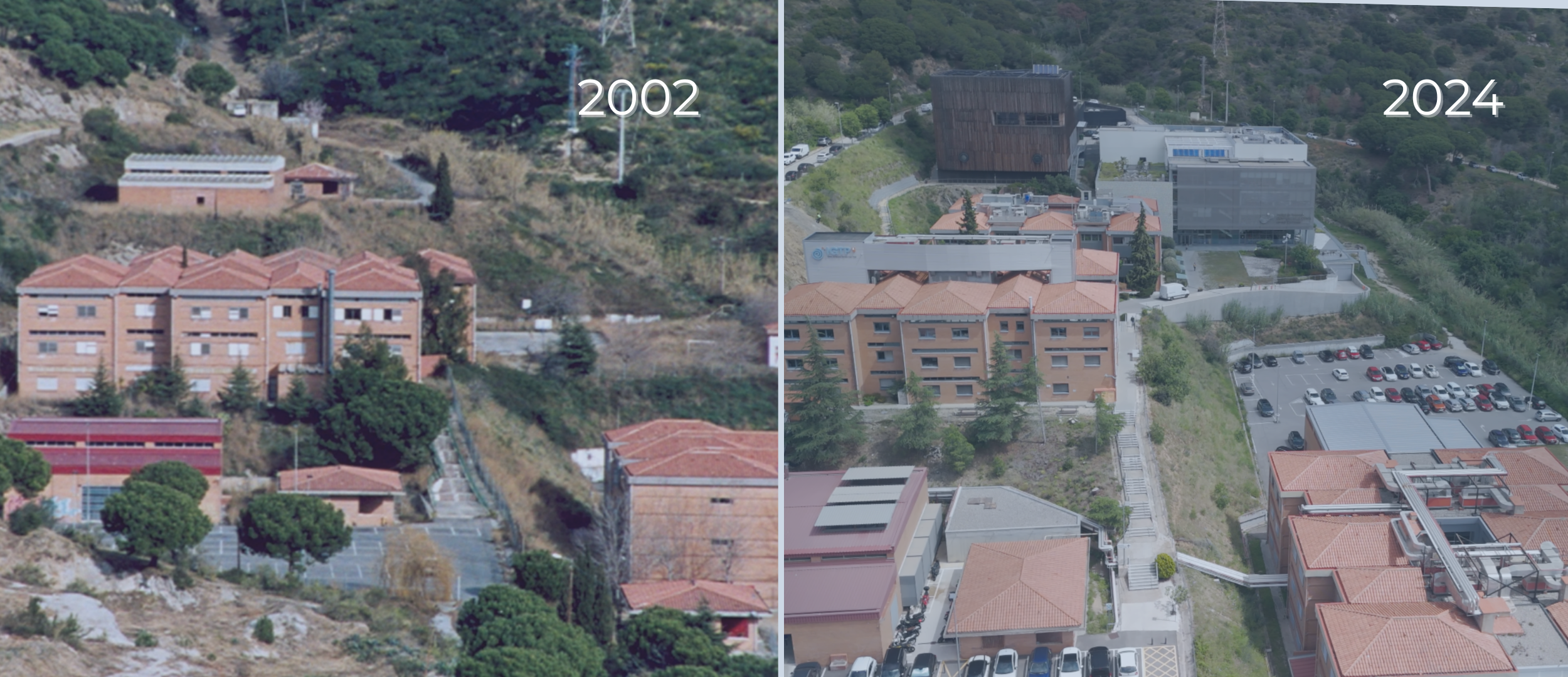 Una vista abans i després de l'entorn de l'IGTP al Campus Can Ruti. La Facultat de Medicina de la Universitat Autònoma de Barcelona s'ha mantingut al seu costat, mentre que en els darrers anys s'hi han afegit el Centre de Medicina Comparativa i Bioimatge de Catalunya (CMCiB) -un projecte estratègic de l'IGTP- i l'Institut de Recerca contra la Leucèmia Josep Carreras -adscrit a l'Instituto de Investigación Sanitaria IGTP.