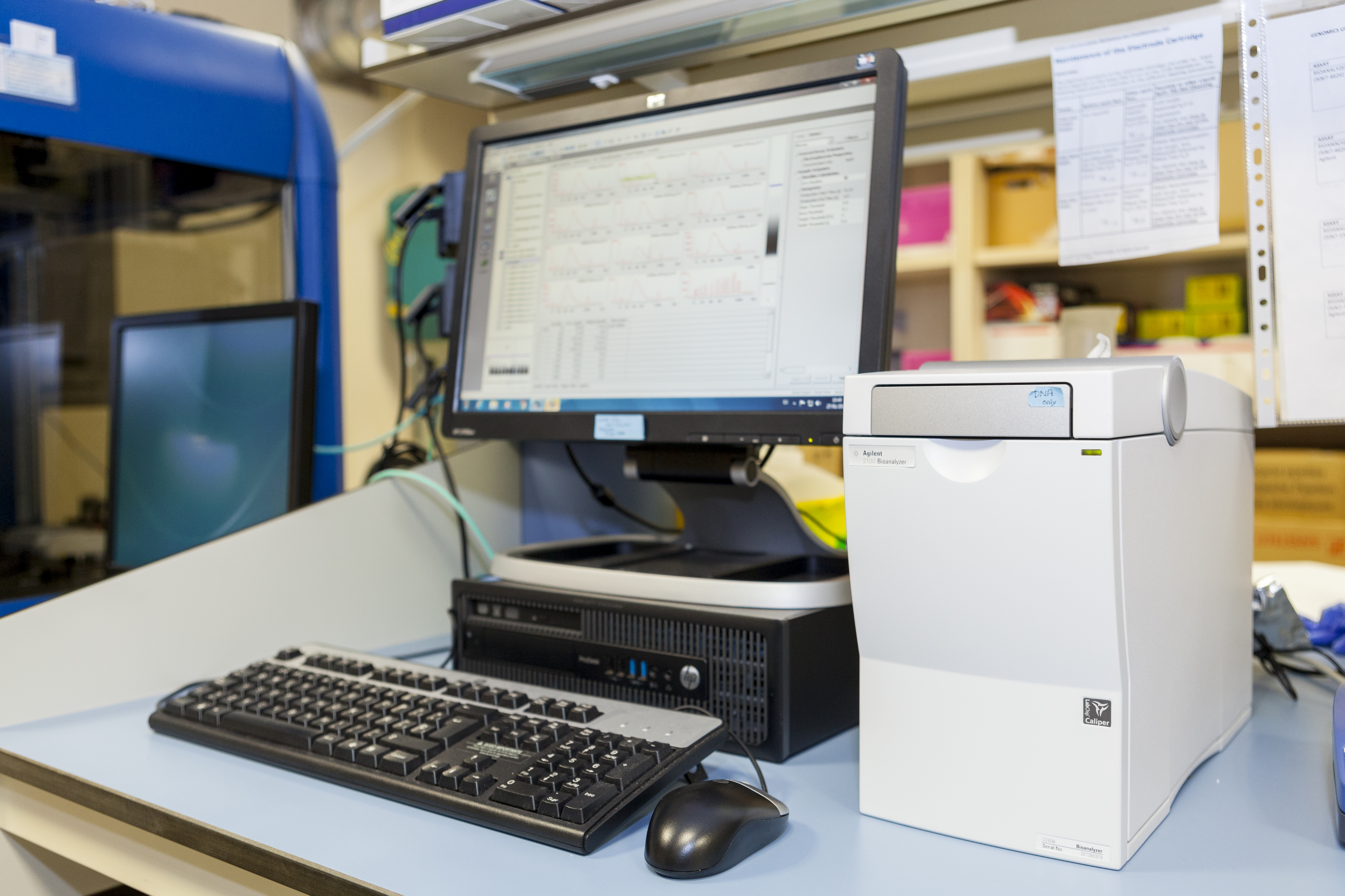 Sistema de nanoelectroforesi automatitzada per xips microfluidic 'lab-on-a-chip'. Emprat per a anàlisi d’integritat i determinació de mida d'ADN i ARN. Permet la separació i determinació de perfils de mida d'11-12 mostres per ús.