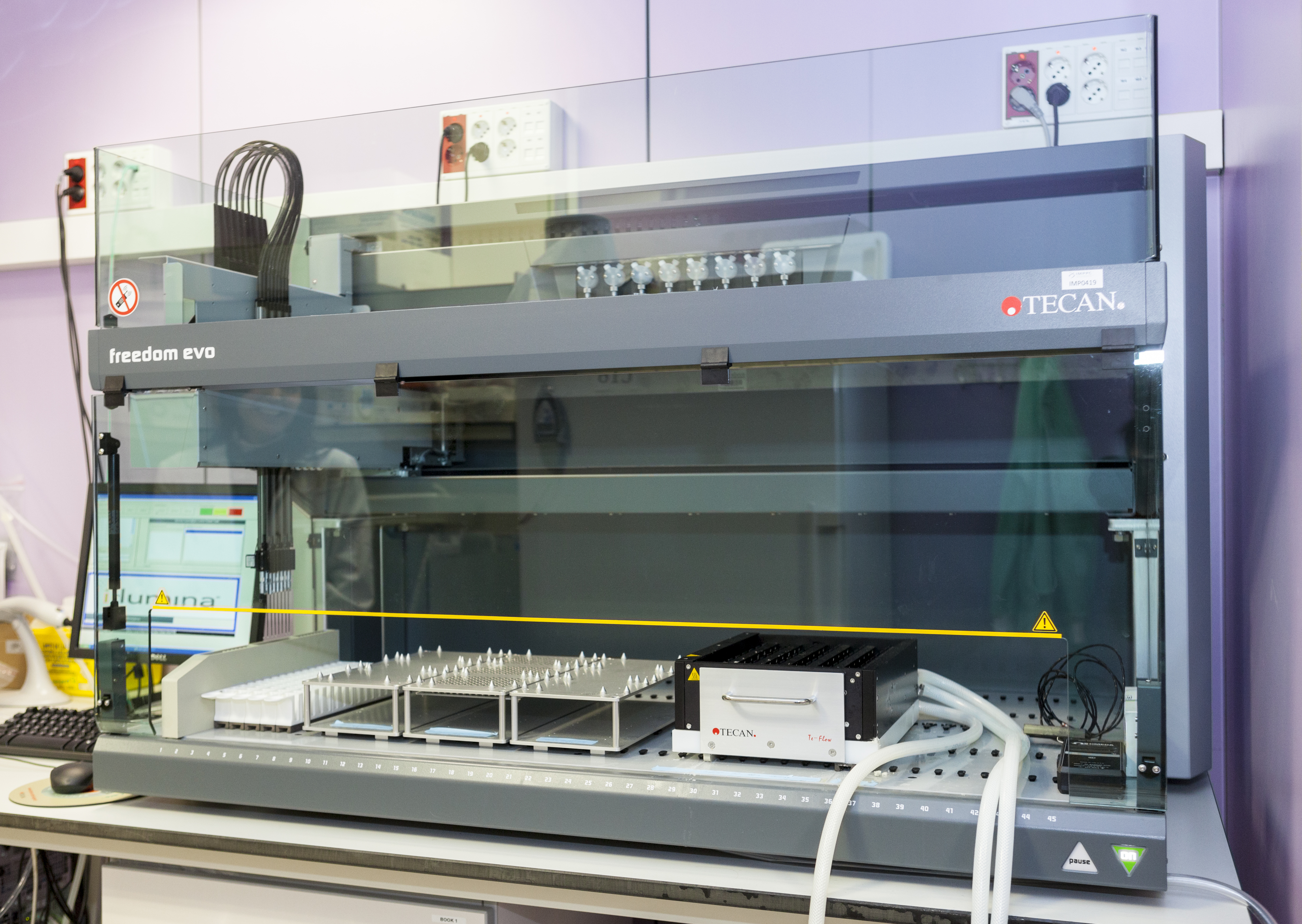Robot que disposa de capçal de 96 puntes d'un sol ús i agafador de plaques. Preprogramat amb protocols per a execució automàtica d'aplicacions de biologia molecular, especialment per a seqüenciació de nova generació (NGS). Permet manejar fins a 96 mostres simultàniament. Emprat per a preparació i quantificació de genoteques NGS, i per a disposició de reaccions de qPCR en placa de 384 micropouets.