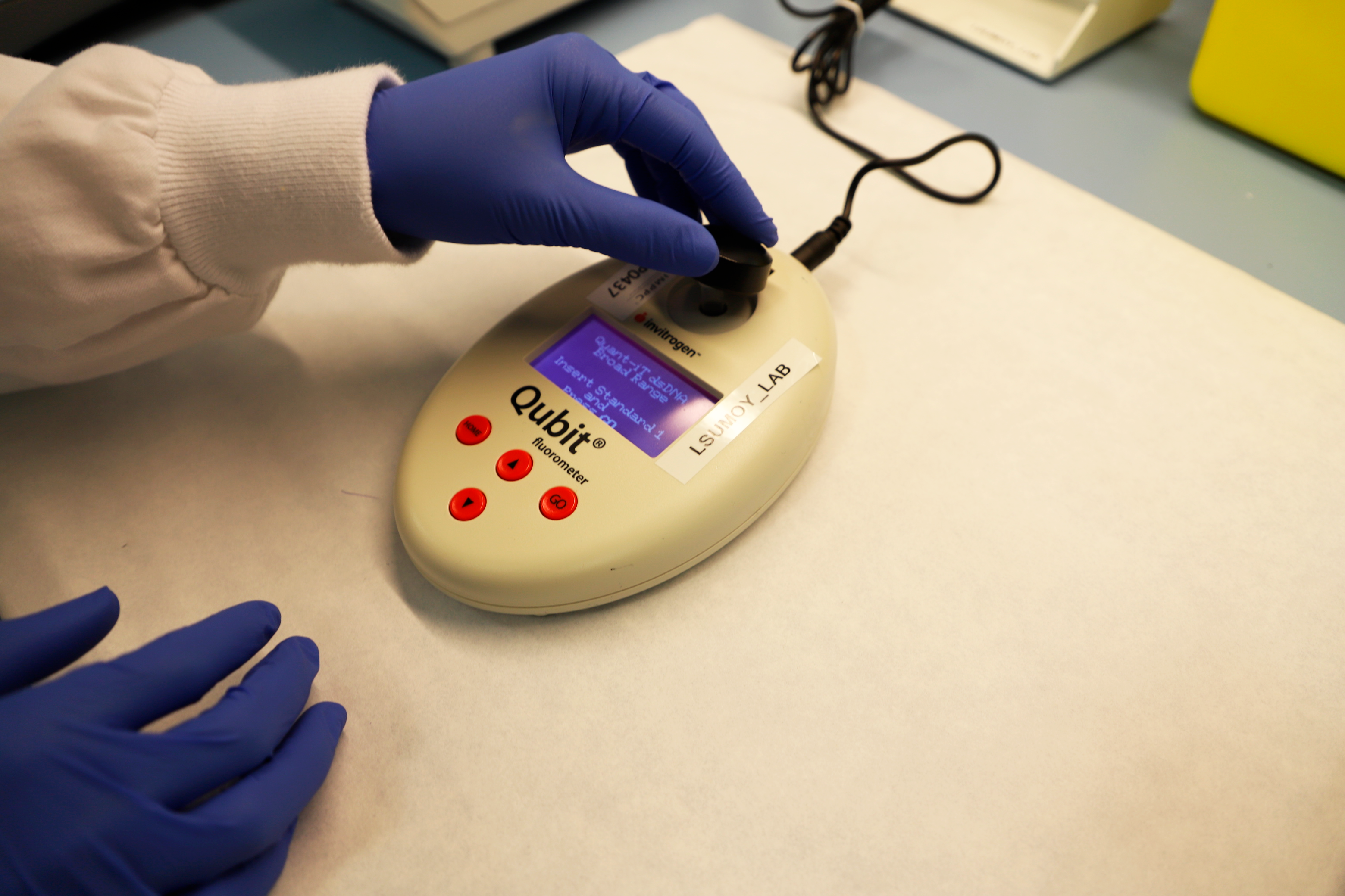 Fluorímetre de tub individual. Emprat per a quantificació precisa d'àcids nucleics a partir de 1-20 µl de mostra. Discrimina entre ADN de cadena senzilla i doble, i ARN.