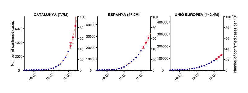 A team of researchers from the Computational Biology and Complex Systems research group (BIOCOM-SC) of the UPC and the Centre for Comparative Medicine and Bioimage (CMCiB) of the Germans Trias i Pujol Research Institute (IGTP) with the support of "la Caixa" Foundation, have developed a mathematical model to follow up the epidemic of COVID-19. The report that they have produced for the Strategy Office of the European Union is updated every day and includes predictions for Catalonia, Spain and the European Union. The model also serves to analyze the efficiency of the measures being established by different countries.
