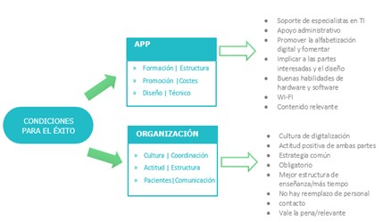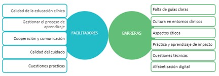 The analysis identifies that a positive attitude towards mobile applications, improvements in the quality of clinical education, management of the learning process, and enhanced patient care quality, among other benefits for patients, are some of the main facilitators.