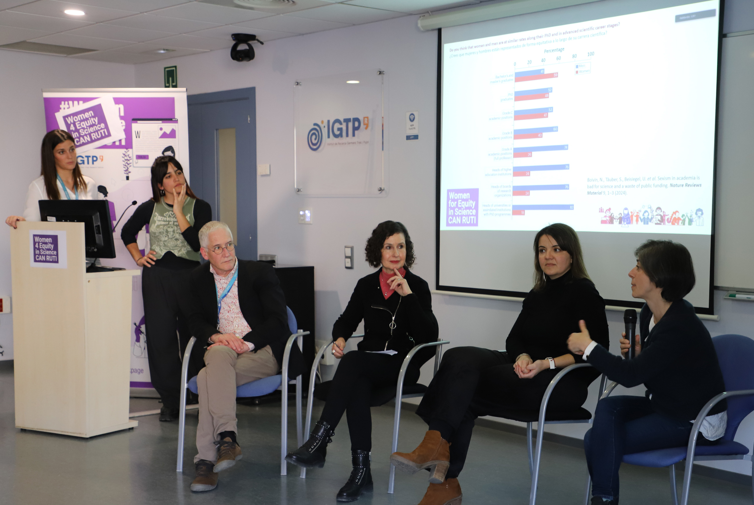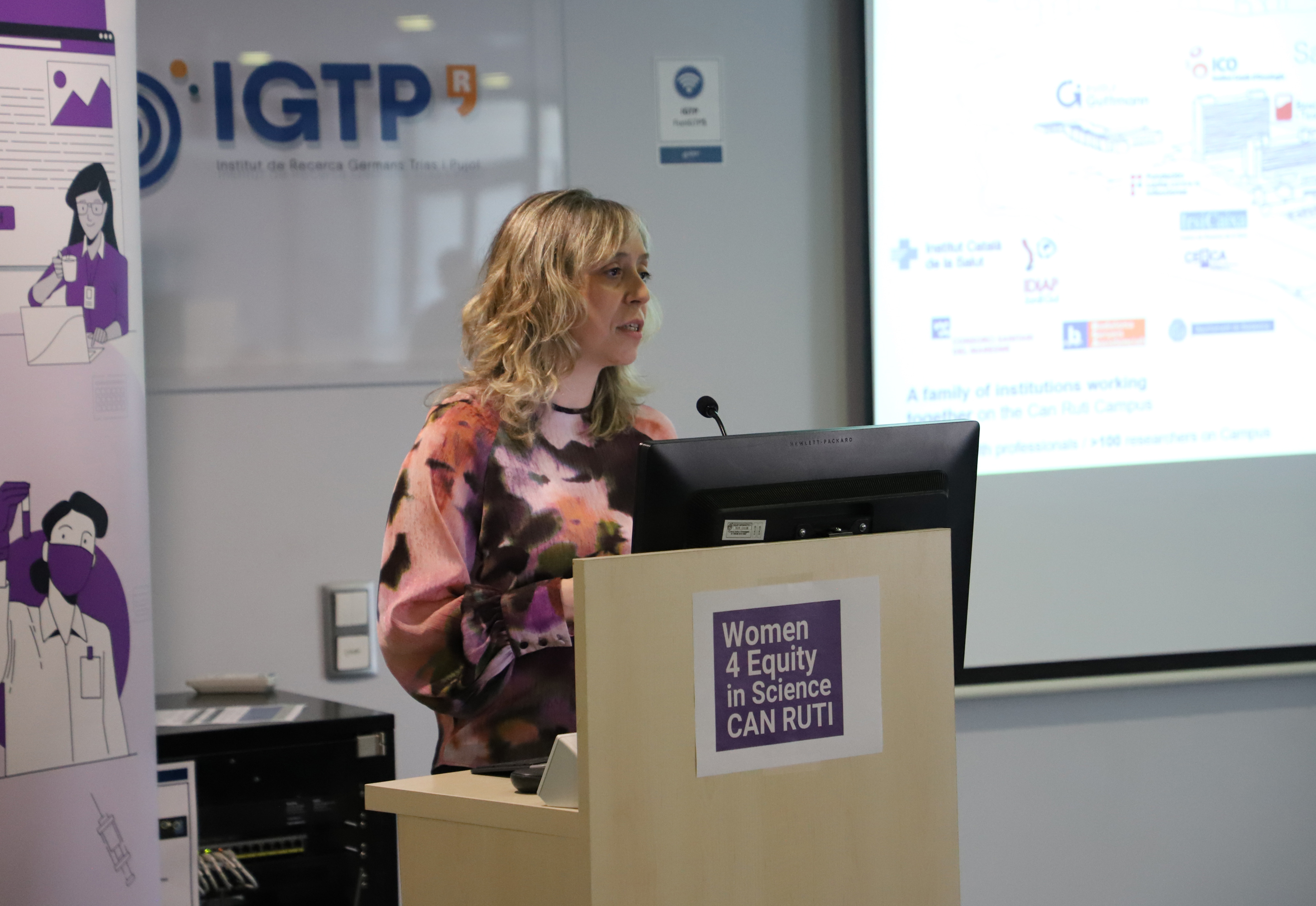 Next, Julia García-Prado, scientific director of IGTP, group leader at IrsiCaixa, and founding member of WiS (now W4E), gave a general overview of the activities carried out on the campus by W4E and the institutional equality committees.
