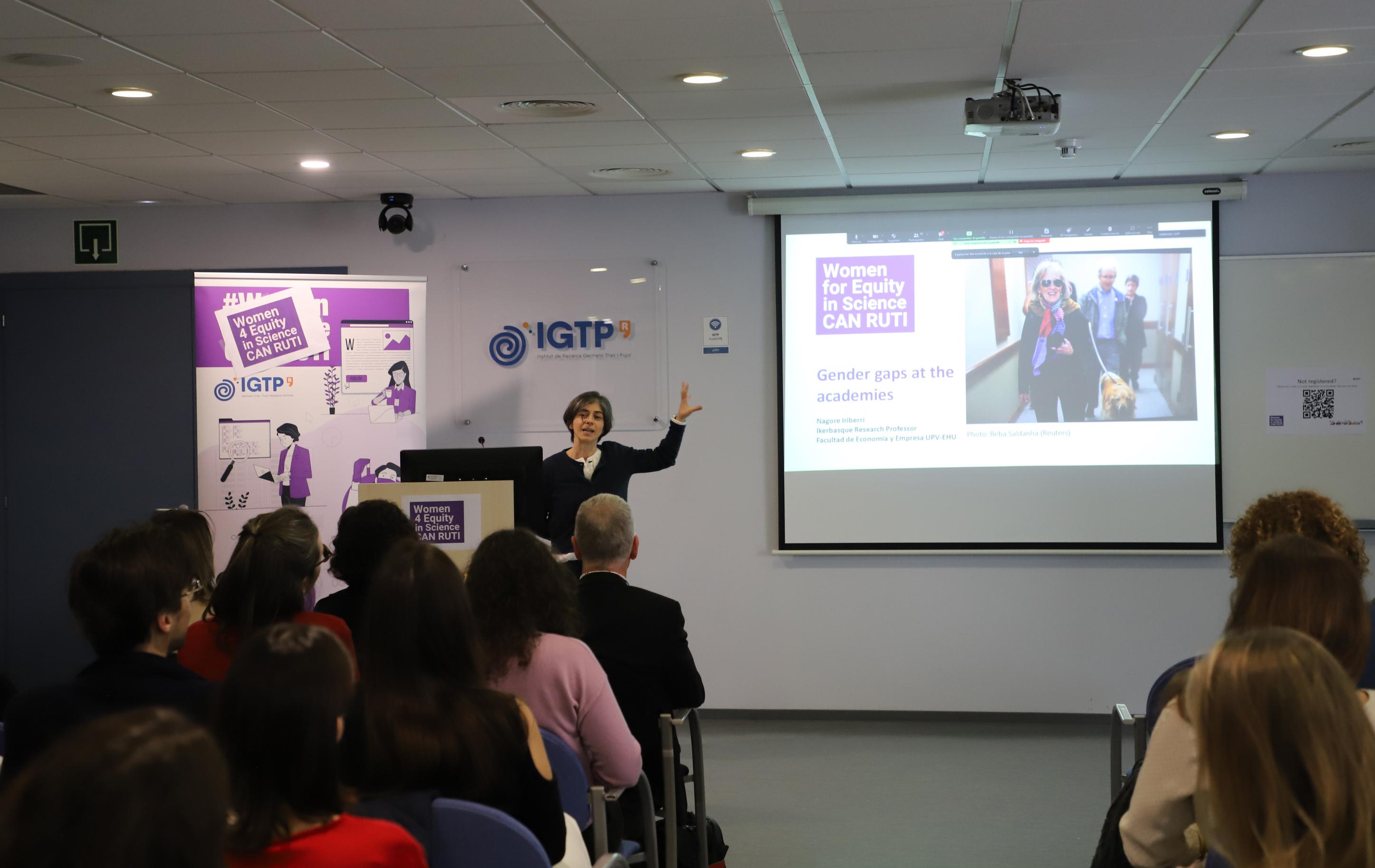 The symposium featured three speakers from outside the campus, linked to the academic and scientific world, who shared their role in promoting diversity, inclusion, and leadership in their respective fields. Coming from the Basque Country, Nagore Iriberri, Ikerbasque Research Professor at the Department of Economic Analysis at the University of the Basque Country UPV/EHU, analysed gender gaps at the academies.