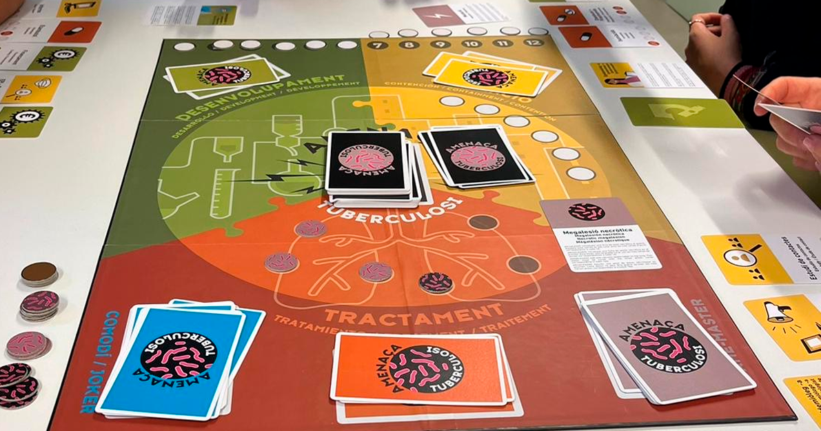 Five early-career researchers (Mariona Cortacans, Pablo Soldevilla, Maria Vidal, Kaori Levy da Fonseca, and Diego Emilio Aznar) from the Experimental Tuberculosis Unit (UTE) at IGTP and Germans Trias Hospital, led by Dr Cristina Vilaplana, have developed a cooperative board game about tuberculosis. Their goal is to spread basic knowledge of the disease to the general public in a fun and interactive format. The first units of the game, titled "Amenaça Tuberculosi" (Tuberculosis Threat) and aimed at anyone over 14 years old, were produced with the support of the Department of Research and Universities of the Catalan Government through the project 2021SGR00920 and a solidarity rounding-up campaign by CONDIS supermarkets.
