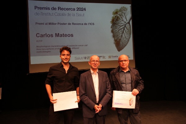 The two awardees for the ICS 2024 Best Research Poster were Jordi Estarlich, from the Primary Care Research Institute Jordi Gol (IDIAPJGol), and Carlos Mateos, from the Cancer Genetics and Epigenetics Research Group (CGE) at IGTP.