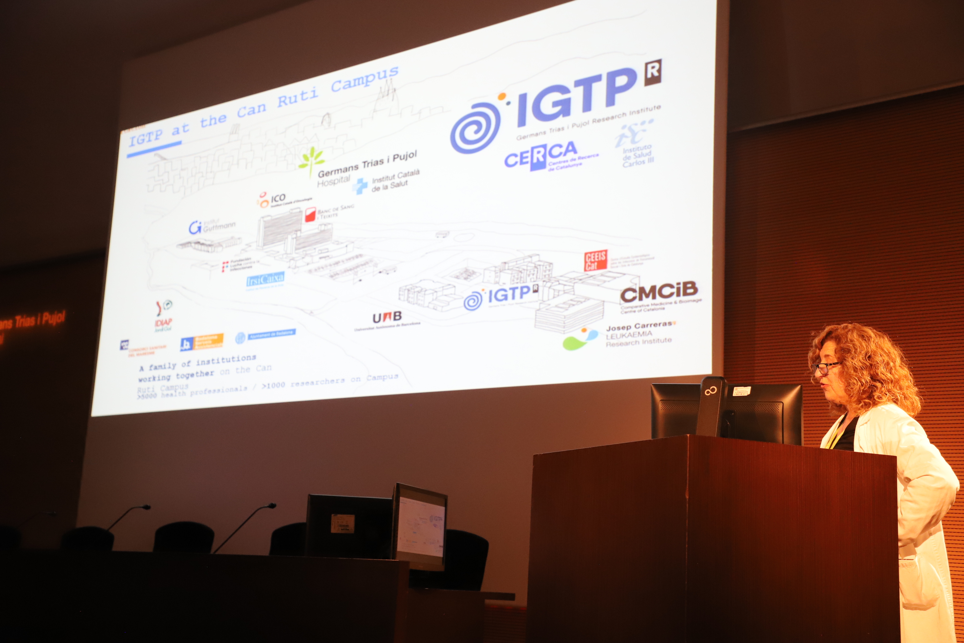 The Open House began in the auditorium of the Germans Trias i Pujol University Hospital (HUGTiP) with a welcome speech by de Jordi Arnal, head of the Unit for Educational Engagement and Participation of the Badalona City Council, and Diego Araque, from the CRP Badalona team. Following this, Eva Martínez-Cáceres, head of the Immunology Department at HUGTiP, leader of IGTP's Immunopathology Group, and professor at Universitat Autònoma de Barcelona (UAB), delivered a presentation on the research conducted at the Campus and its societal impact.