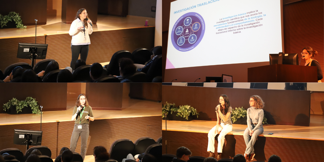 Students also had the opportunity to learn about biomedical research projects from young women researchers. This segment featured Manuela Barranco, from IGTP's Childhood Liver Oncology Group (c-LOG), discussing translational medicine and hepatoblastoma; Alba Prats, from Institut Guttman, on the use of virtual reality in neurorehabilitation; Marta Costa, from the Badalona Applied Research Group in Oncology (B·ARGO) at IGTP, on translational oncology; and Núria Sima and Berta Barnadas, from the Plasmodium vivax and Exosome Research Group (PvREX) at IGTP and ISGlobal, on globally impactful parasitic diseases. The students were able to engage with the researchers and ask questions about their work and careers.