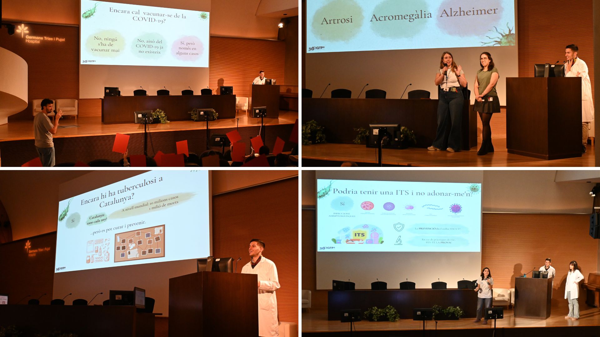 The day began in the Auditorium of the Germans Trias i Pujol University Hospital with the lecture "We do research at Can Ruti" by Dr Júlia García Prado, scientific director of IGTP, who highlighted the importance of biomedical research and cooperation among the campus centres. Afterwards, participants tested their knowledge with a health research quiz and learned first-hand about the work of young researchers developing their careers at Can Ruti.