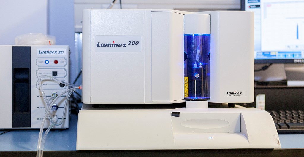 Luminex® 200 System is a flexible analyzer based on the principles of flow cytometry. Luminex® 200 sets the standard for multiplexing and offers the ability to perform up to 100 different tests in a single reaction volume and use either magnetic beads or plain polystyrene beads. The equipment performs higher sample throughput with a 96-well plate read time of only 45 minutes.