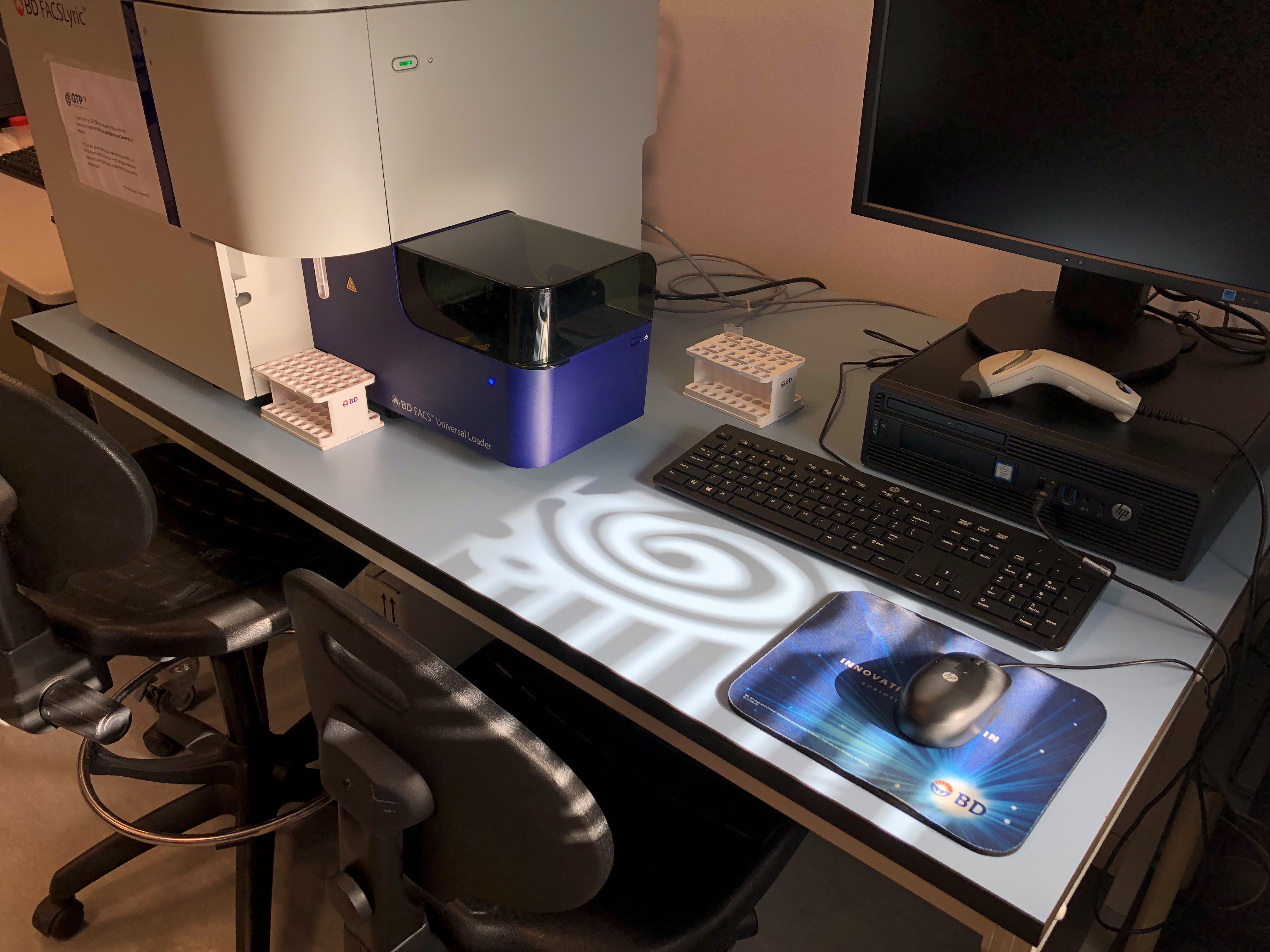 FlowJo, BD FACSDiva and CellQuestPro are installed in Apple iMac Intel i7 16 GB RAM with MAC OSX and Windows (XP y 7) systems. Workstation with Windows10.