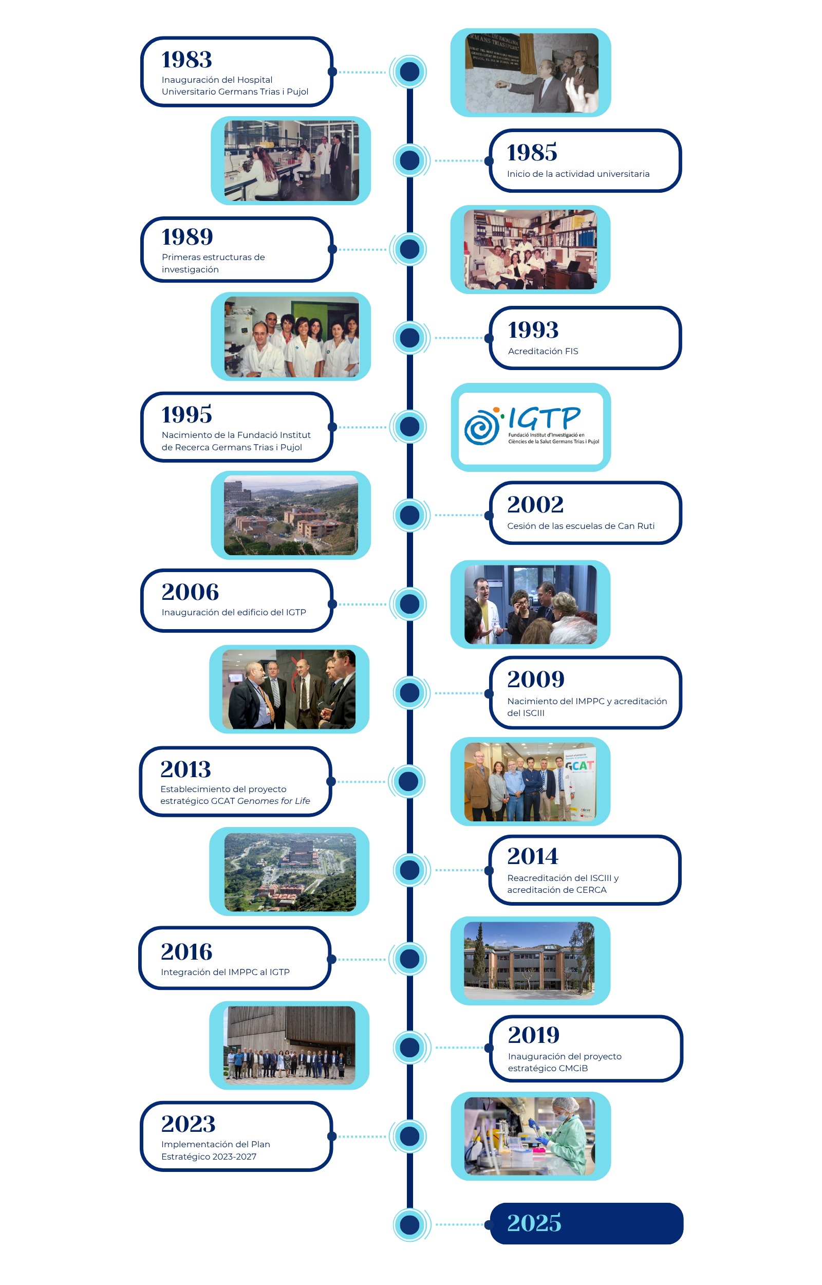 Desde su fundación en 1995, el Instituto de Investigación Germans Trias i Pujol (IGTP) ha trabajado para trasladar los descubrimientos del laboratorio a la clínica. La colaboración, la innovación y una dedicación constante a mejorar la vida de las personas han definido su trayectoria, posicionando al instituto como un referente en investigación biomédica.
