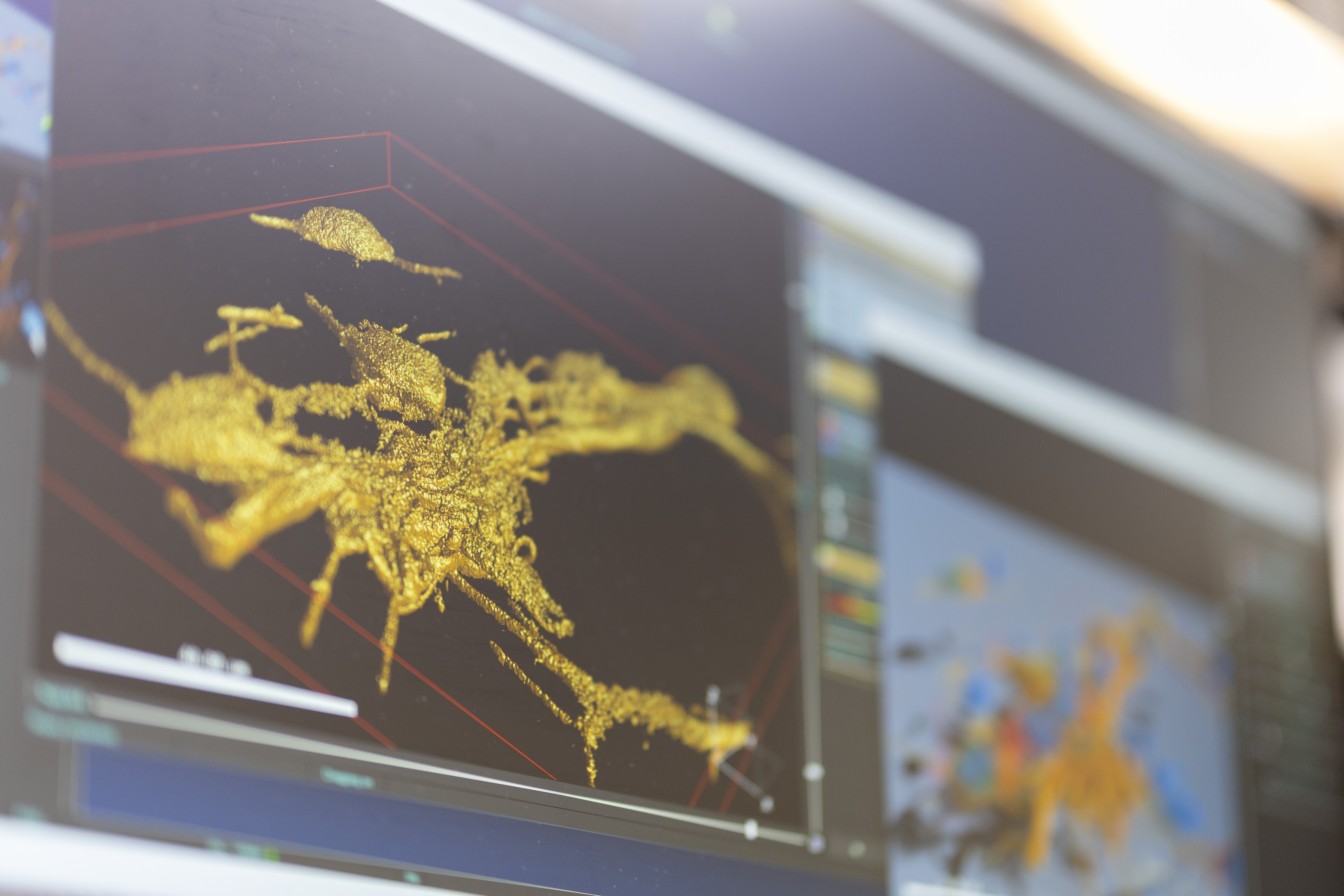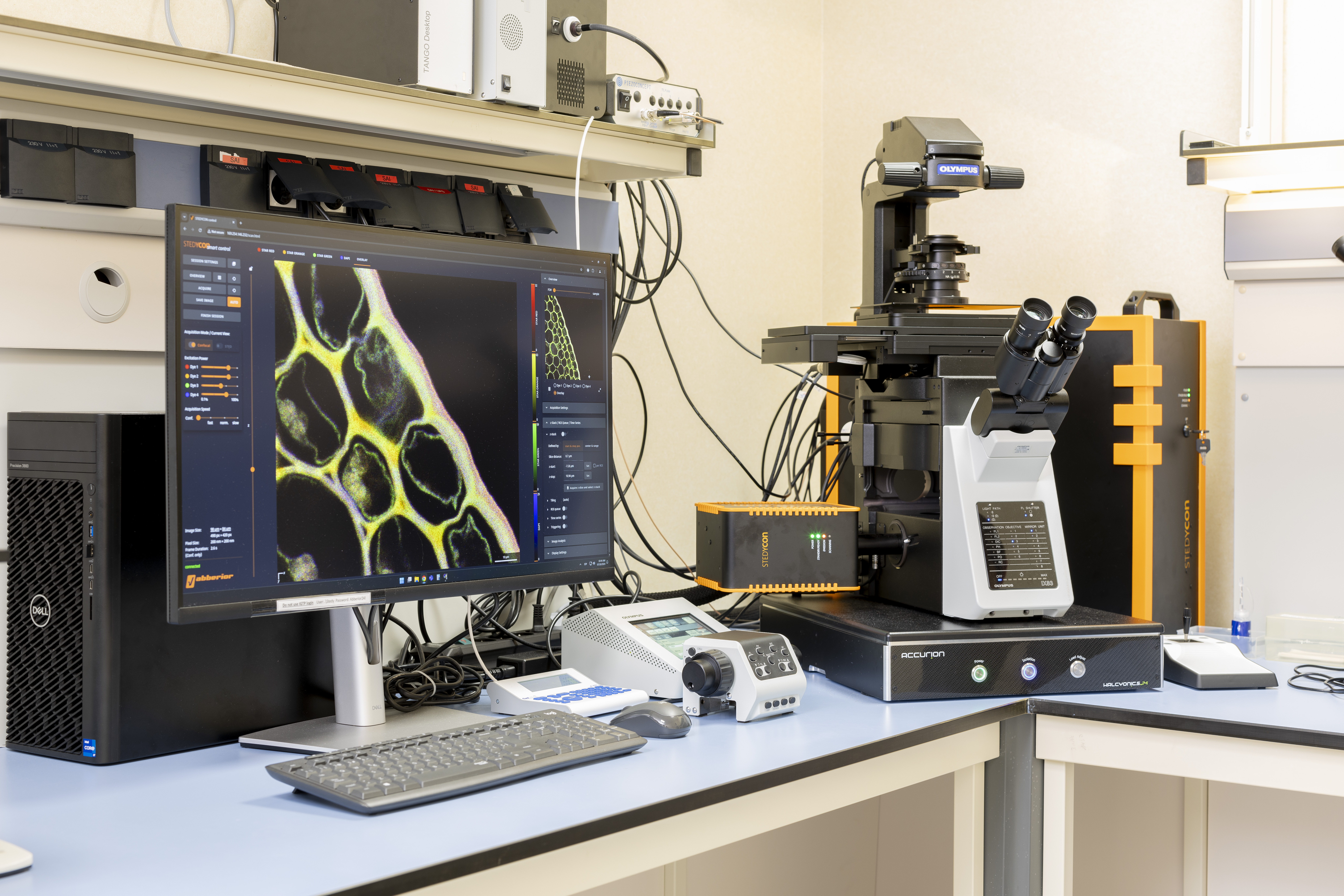 Una estación de trabajo (CPU: Intel Xeon W5-2465X de 16 núcleos a 4.50 GHz, 256 GB de RAM DDR5 ECC, GPU: NVIDIA RTX A5000 de 24 GB) diseñada para ayudar a manejar grandes conjuntos de datos y tareas complejas de procesamiento de imágenes. Viene con el software comercial de procesamiento y visualización de imágenes SVI Huygens Professional, así como con varias aplicaciones de procesamiento de imágenes de código abierto.
