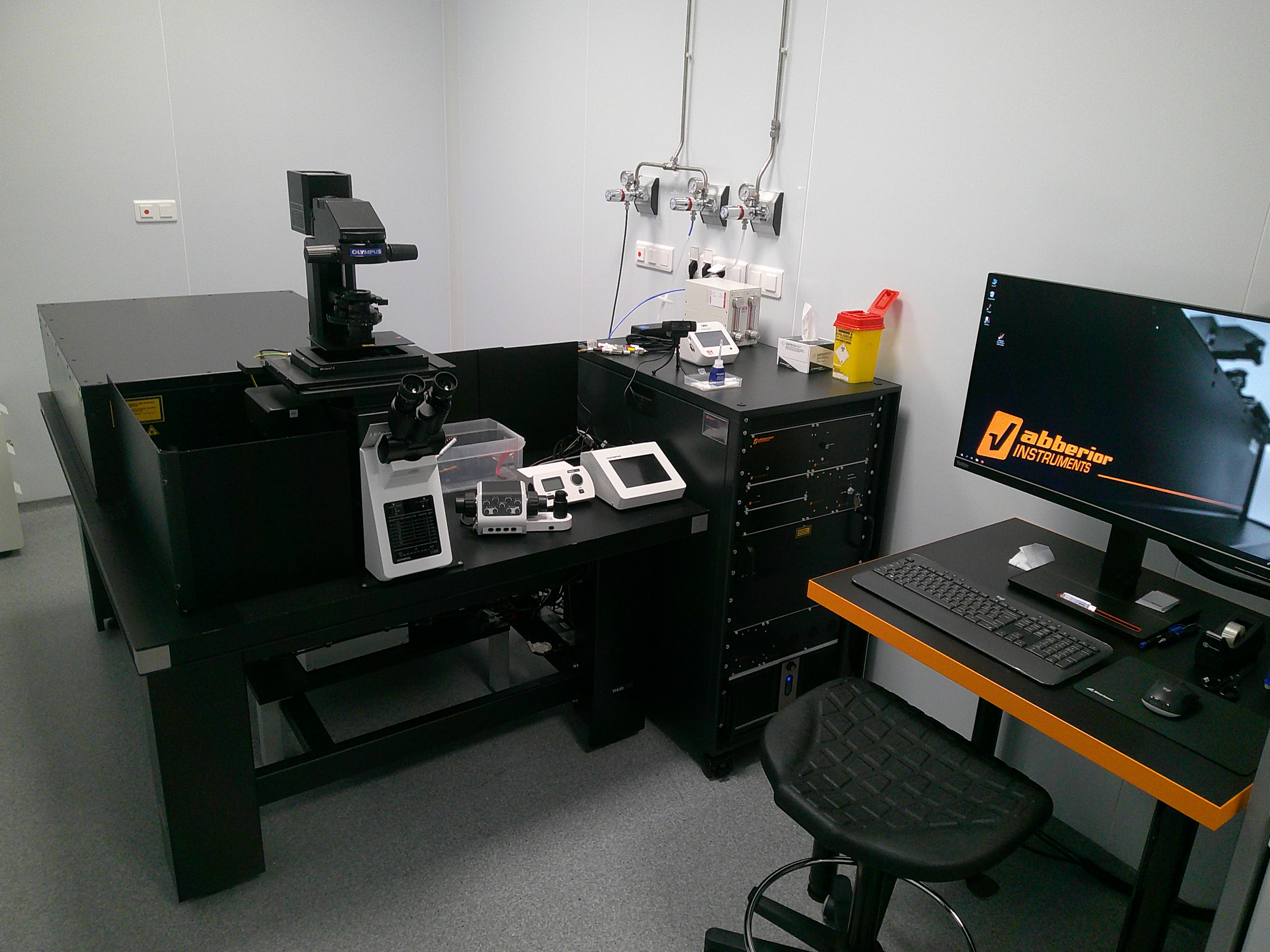 Abberior STEDYCON es un microscopio compacto confocal y de super-resolución capaz de realizar imágenes en cuatro colores tanto en modos confocales como en modos de super-resolución STED (con una resolución de hasta 40 nm). El STEDYCON está acoplado a un cuerpo totalmente motorizado Olympus IX83, equipado con iluminación epifluorescente QUAD-band, así como objetivos secos de 10x y 20x, más objetivos de aceite de 40x y 63x. El software STEDYCON para la obtención y análisis de imágenes también incluye el software SVI Huygens Pro para el ajuste rápido de la imagen y la deconvolución.