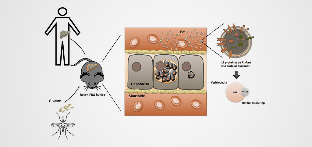 En este estudio, el equipo investigador liderado por Hernando A del Portillo y Carmen Fernandez-Becerra, investigadores de l'IGTP e ISGlobal , se propuso explorar la posibilidad de utilizar exosomas (pequeñas vesículas secretadas por las células) circulando en la sangre para detectar la presencia de hipnozoítos en el hígado. Para ello, usaron un modelo experimental innovador desarrollado por colaboradores del CIDR (EEUU): ratones 'humanizados', que tienen células hepáticas humanas y por lo tanto pueden ser infectados por P. vivax. A partir de la sangre de dichos ratones, Melisa Gualdrón-López (investigadora IGTP del programa PERIS), aisló exosomas de origen humano que contenían hasta 17 diferentes proteínas del hipnozoíto, incluyendo una que aún no se había descrito.